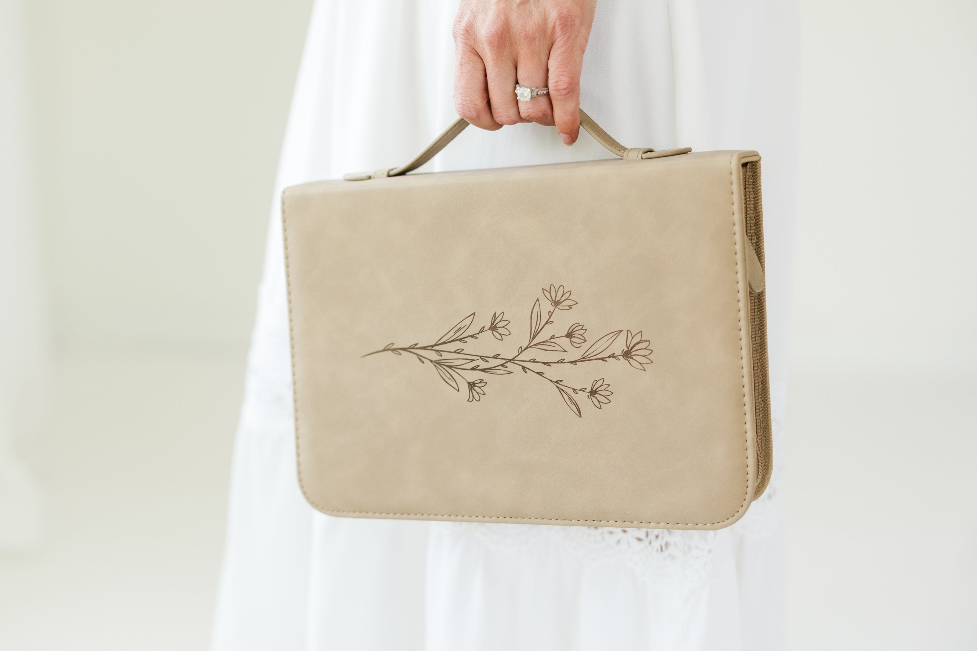 Carry your faith in style and sophistication with our beautifully crafted Premium Vegan Leather Bible Cases. Featuring intricate debossed floral designs, these cases are designed to protect, organize, and inspire. Spacious enough for your Bible, notebooks, and daily essentials, while offering a sleek and timeless look.