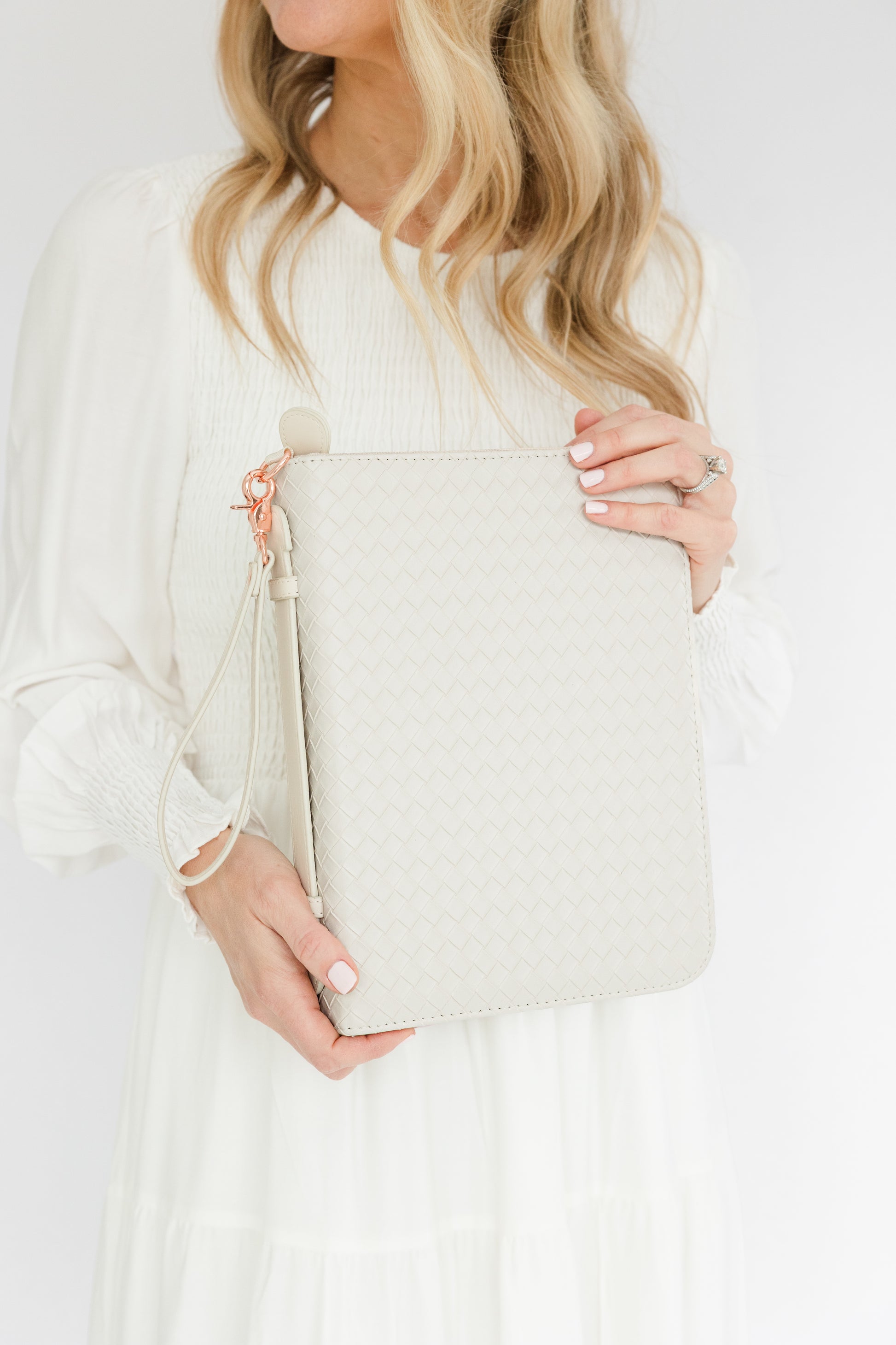 Crafted for everyday functionality and style, this Weave Vegan Leather Bible Case in Pearl is thoughtfully designed for women who love simplicity with a touch of elegance. More than just a Bible cover, it combines fashion and faith into a statement piece.